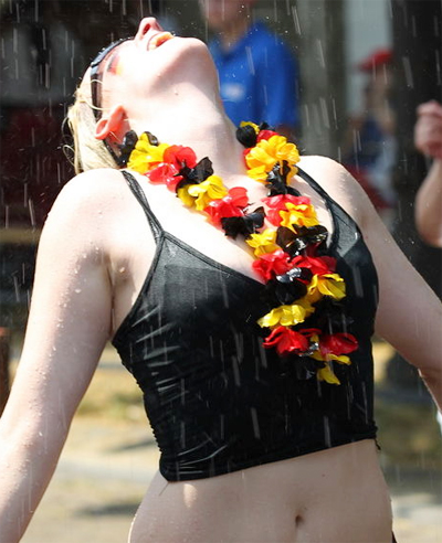 World Cup 2010- German hot girl football fans in bikini celebrates and dances after winning Argentina