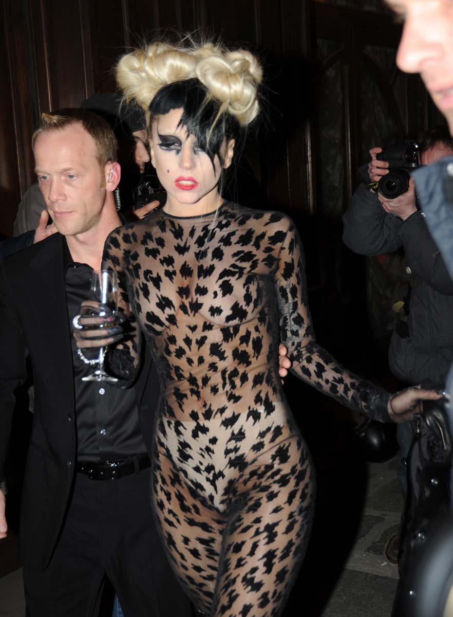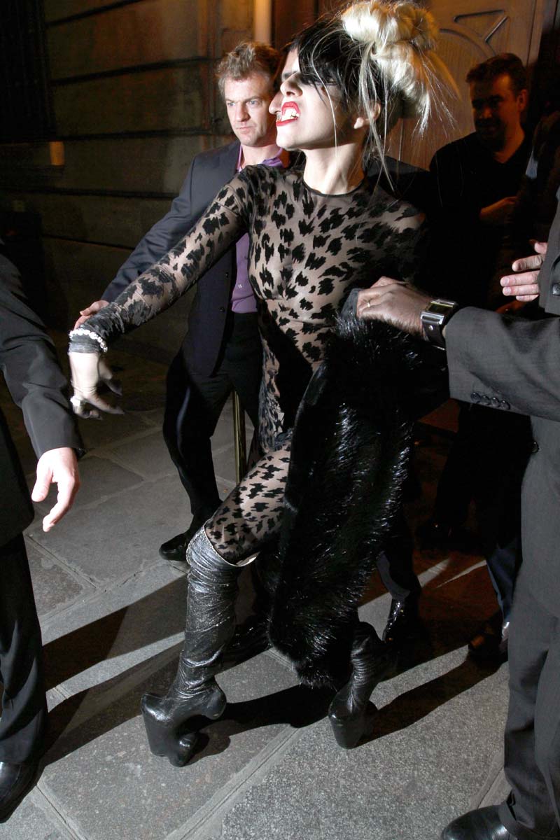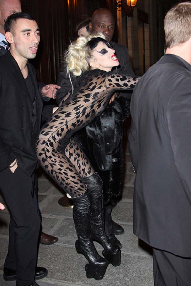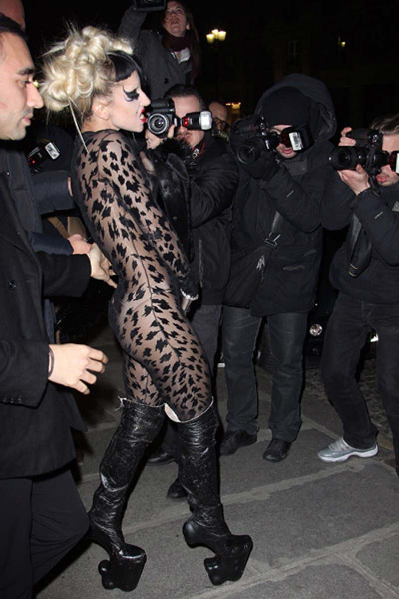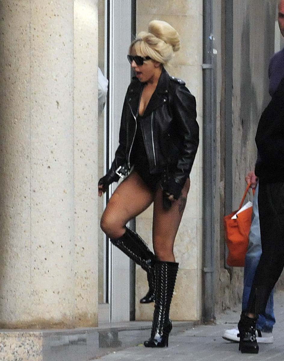 You know that I have never placed Lady Gaga in the hot celebrity babe list, and I want to keep it that way, but you might notice that her pictures are fairly common on my site. The reason is very simple… I’m just addicted of the woman’s body, big boobs and hot asses, so appreciate an ass under almost all circumstances and that is pretty good reason why she is here. Although Lady Gaga is actually quite repulsive, all but her disgusting face reminds me of a woman. So, I do like the fact that she wears slutty clothing filled with holes so that I can got a decent look at her ass. So, next time when I put pictures of Lady Gaga walking around in her little bra and ripped tights, I hope that I will not have to explain the reasons for that…