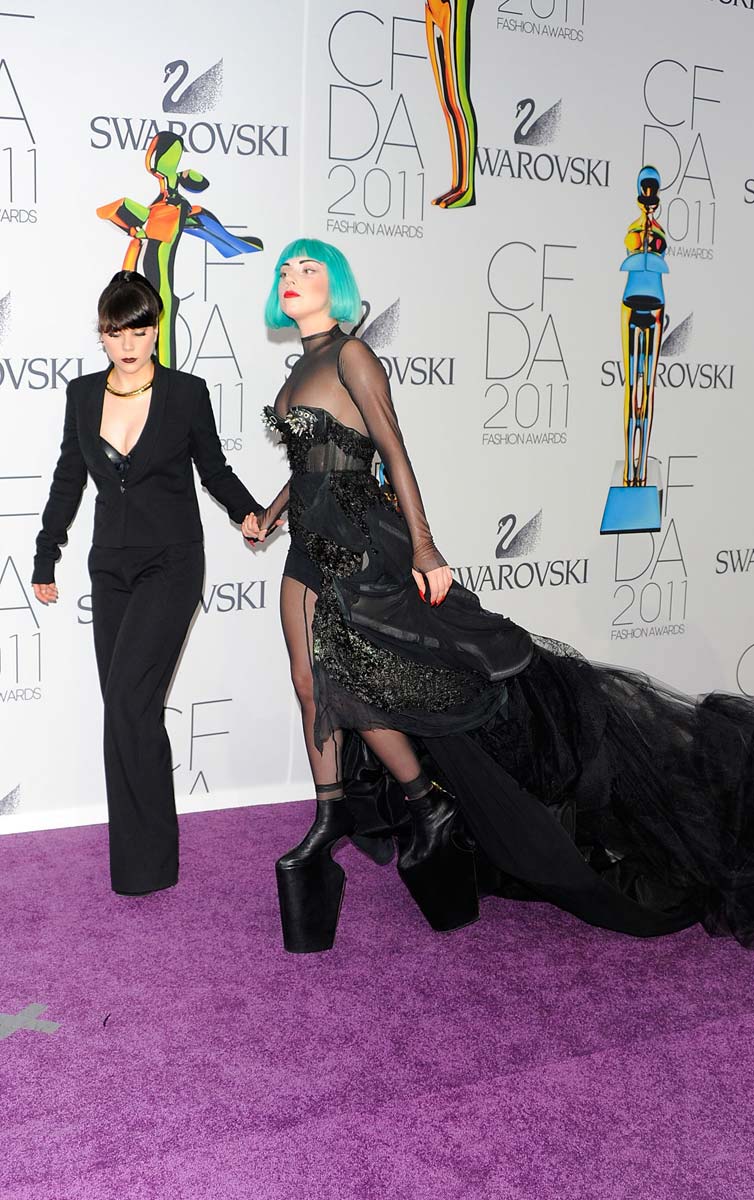 when it comes to shocking or provocative outfits or wardrobe malfunction’s… That’s just her! Anyhow, controversial music diva decided to donate another Lady Gaga oops moment at the New York City carpet last night and shows off her boobs at the CFDA Fashion Awards. Alleged breasts accident is not definitely so big surprise and I must say that her breasts, booty and rest of her body aren’t bad actually, but that face…
