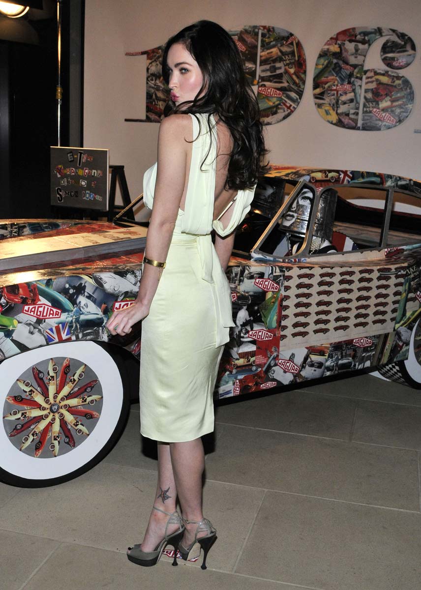 Here is once the hottest piece of ass on the planet Megan Fox at some Jaguar E-Type Anniversary Party the other day. I say once because no matter how much Megan Fox still looks hot, she is not even half of what she once was and what in what we are accustomed. Oh how I miss those times… However, I’m very happy that I managed to crop her 9021-douche of her husband. Enjoy