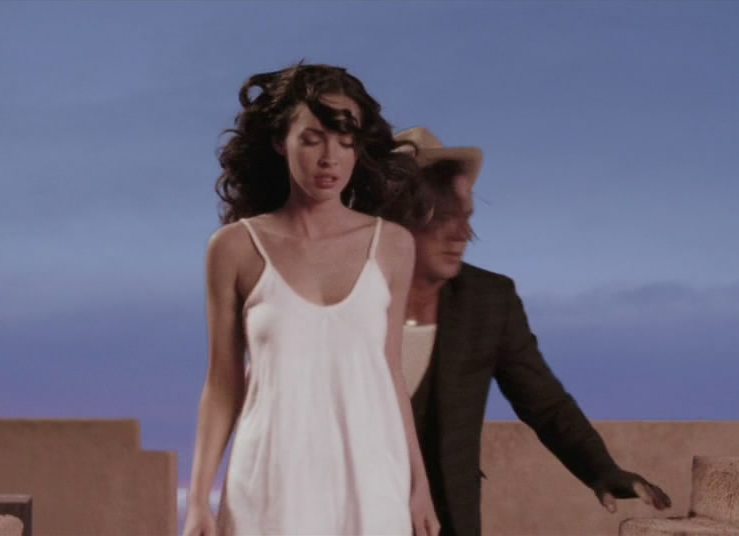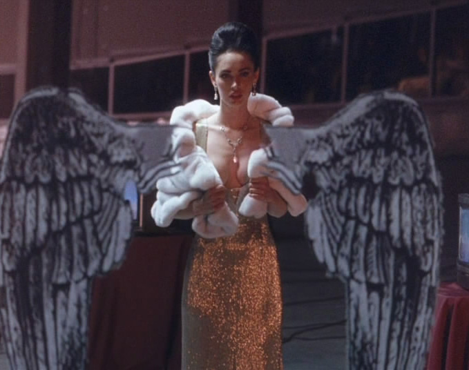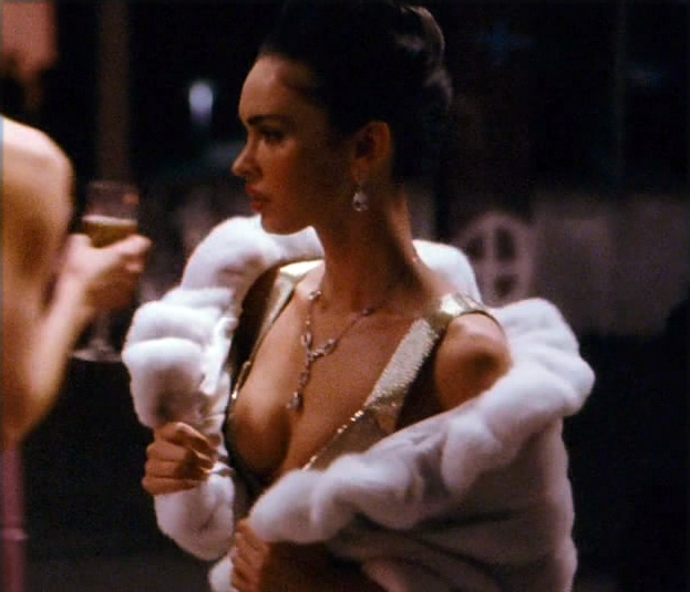Megan Fox hot while walking through a party in a very low-cut dress that shows plenty of cleavage, holding a fur around her shoulders. She stops to look at herself in a mirror for a bit before turning to face a guy who has been watching her. From Passion Play. Play Megan Fox Hot Passion Play Video <