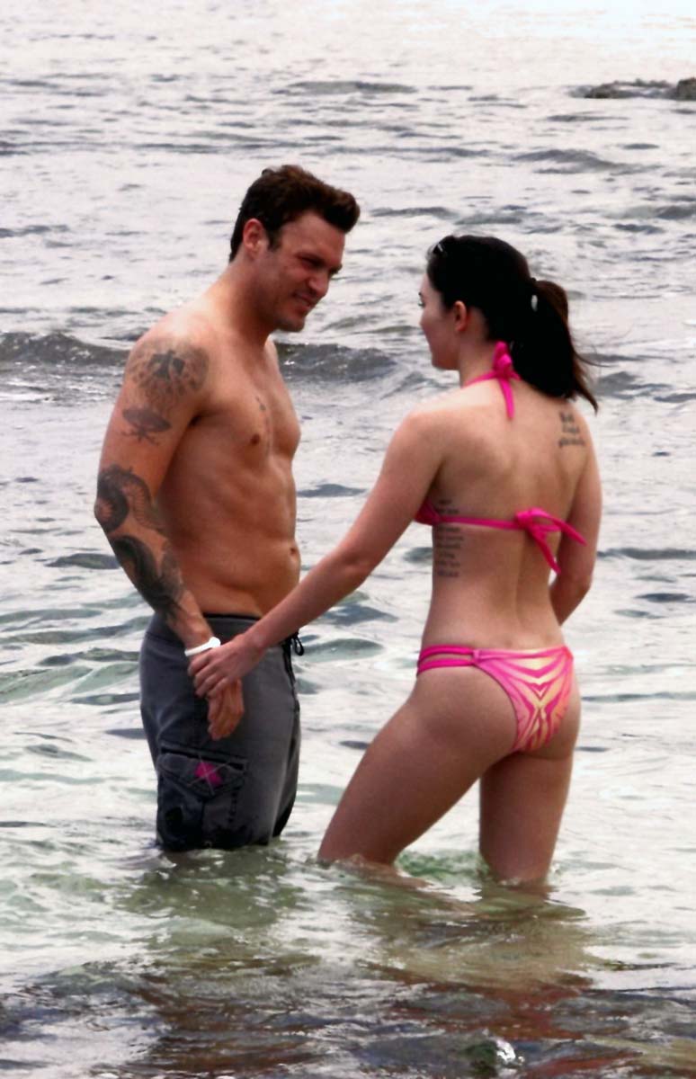 I heard that Megan Fox and Brian Austin Green celebrated their first year wedding anniversary in Hawaii where it all began, but although I really do not care about this shit at all I was hoping that I’ll see some Megan Fox bikini pictures… and here they are, so I could not let this shit go by without posting pictures of it. Here she is hanging out in her sexy little bikini and showing of her tight little body and helping me once again to overlook the fact that she is hanging out everywhere with that piece of shit husband of hers since they get married…