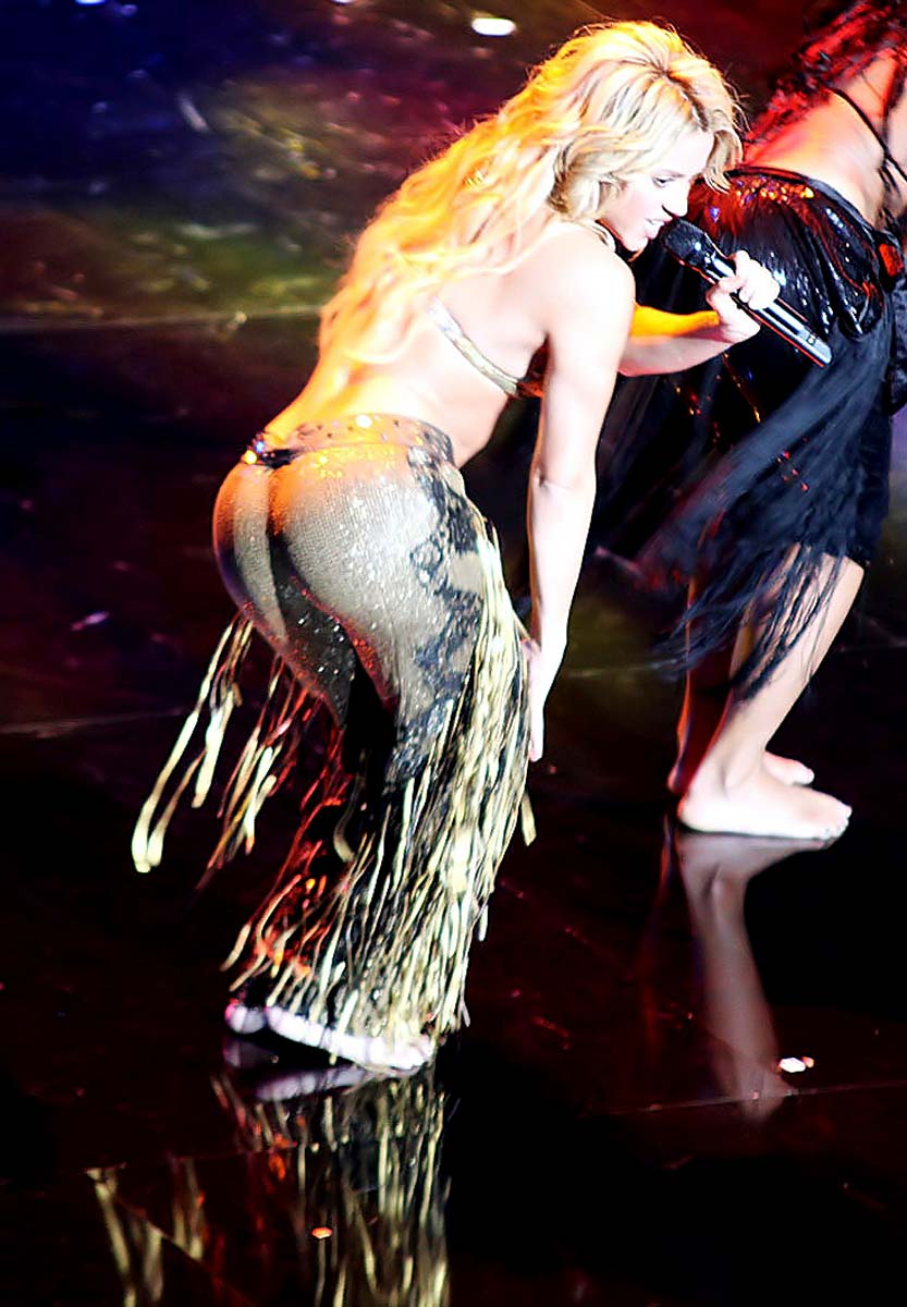Here is sexy latina Shakira dancing around in a sexy little outfit on stage on the set of her new music video in Barcelona.This girl has never been to shy away from shaking her big booty in some little slutty outfits,so these pictures of her hot ass popping out of her pants shouldn’t come as much of a surprise….Enjoy